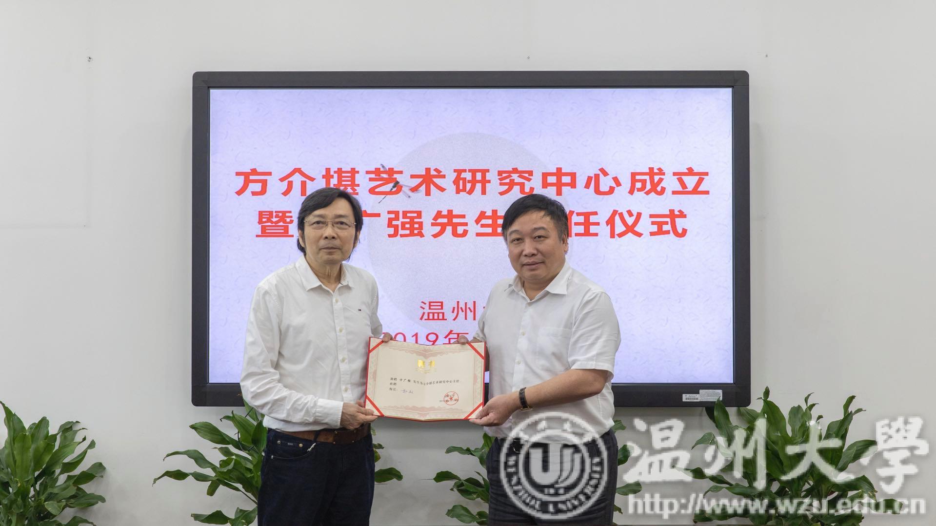 4月24日下午,方介堪艺术研究中心在温州大学成立,方介堪的幼子方广强先生出任研究中心主任。学校原党委书记陈艾华、校长赵敏、副校长徐和昆、蔡曙光以及人文社科处和美术与设计学院负责人参加了中心成立仪式。