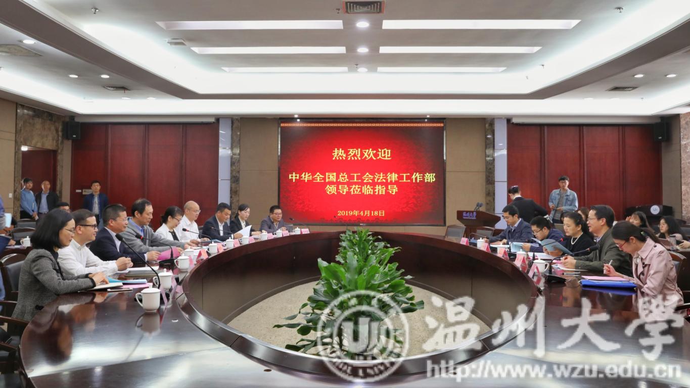 4月18日上午,由中华全国总工会法律工作部副部长张瑞玲、法律工作部法规处处长李进东、资产监督管理部保障事业处干部张爱玲,省总工会党组成员、副主席徐前和法律工作部副部长吴进州等组成的中华全国总工会调研组莅临我校召开关于《工会法》实施情况、工会劳动法律监督工作情况专题调研座谈会。温州市总工会党组成员、副主席刘金丹,校党委副书记牟德刚,法政学院负责人,温州市各级工会负责人、法律援助志愿者、职工代表、学生代表等参加座谈。
